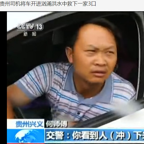 關鍵時刻果斷出手的司機名叫何安明,今年38歲,家住黔西南州義龍試驗區頂效鎮馬別社區。 當天上午,何安明的妻子準備到興義市上班,但是考慮到下雨后路面水多,她不敢獨自開車。何安明就開車將妻子送到單位后返回頂效鎮。 返程途中,盤山公路上的洪水越來越大,何安明無奈在半山腰上等待了一個多小時。快12點時,考慮到家中6歲多的孩子獨自在家,何安明決定調頭走另外一條路。 當他剛把車倒好,正在觀察路況時,忽然看到盤山公路上方的洪水中卷著兩個孩子和一名婦女,后面一名交警正在追趕。其間,交警已經用手拉住了婦女,但洪水沖力太大,沒能抓住。 “當時可能只隔我五六米遠了,三人沖下來的速度太快,目測不低于20碼!焙伟裁骰貞浾f,公路下面就是峽谷,眼看情況危急,他立即深踩一腳油門沖到洪流中,快撞到道牙時,又猛然剎住。 車輛剛剎住兩秒,“砰”的一聲震動,三人就沖到了車下。 “沒什么比生命重要” “說不怕,我也怕。”談到開車救人的那一刻,何安明說,怕的不是自己,怕的是水下的幾個人!皼]有想什么車不車,車沒有人的生命值錢。” 何安明說,車輛攔截下三人后,小男孩首先被救援的人救了起來,但小女孩和婦女則被沖到了車下。 “當時,我非常擔心底盤下的兩人嗆水后,會有生命危險!焙伟裁髡f,隨后有人喊了一聲:“把車抬起來。”周圍的群眾齊心協力上前幫忙。經過幾次嘗試并增加抬車的人,最終車被抬起,小女孩和婦女被救了出來。 當時,小女孩在掙扎,而婦女已經昏迷。經過人工呼吸,婦女終于蘇醒過來。 何安明說,年輕時做過泥水工、擺過地攤、賣過菜,現在自己開了一個磚廠!笆鄽q的時候,我在興義五中上高中。一天在校外看到一位民警正在抓小偷,當時我無動于衷,看到小偷和民警就從自己身邊跑走。事后我一直很后悔,覺得自己當時就應該伸腳絆倒小偷的。” 何安明說,這一次,他做了自己該做的事。 洪水無情,人有情。滾滾洪流中,一股正能量的暖流托起生命。危難之中自見善惡,舍身涉險彰顯大愛。司機富有智慧和冒險精神的見義勇為,以及所有施以援手的好心人,共同構成一幅抗險救人的善行圖,讓我們感受到了溫暖和美好。 【參考文獻】:多彩貴州網 |