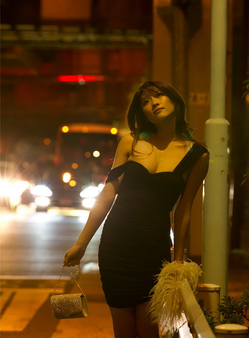 日本美模緊身黑裙深夜憂郁圖片