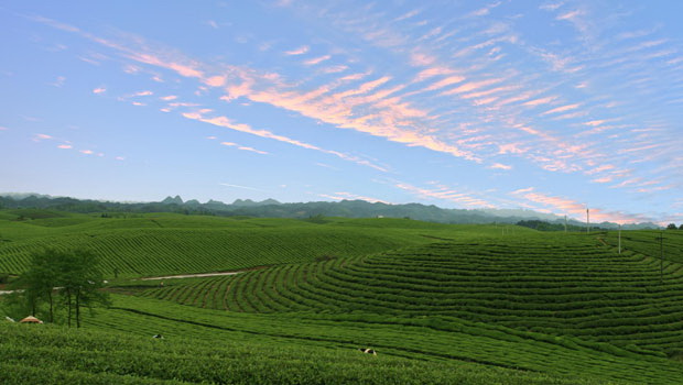 湄潭茶海景區位于貴州省湄潭縣永興古鎮境內,距湄潭縣城20公里,326國道穿“海”而過,是目前世界上面積最大的成片茶園,面積達4.3萬畝,核心區域面積也近萬畝。身處茶海,看景:橫成波,縱成浪,綠浪浩瀚;聽聲:近似濤,遠似潮,茶香撲鼻;感受:納百川寬廣胸懷,顯冰心一色茶天,徹底回歸大自然!