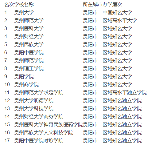 貴陽市最佳大學(xué)排行榜