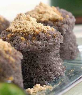 沖沖糕起源于黔南布依族苗族自治州獨山縣,有100余年歷史,以其制作方便、價廉物美的特點廣受當?shù)厝说南矏邸?/p> 制作“沖沖糕”的工具是采用棕樹木制成的,分為隔板、蒸籠、木棒3大件。其中隔板略小于鍋口,將之架于蒸鍋口上,起密封和支撐作用,板面根據(jù)能容納小蒸籠 的個數(shù)來鉆氣眼;蒸籠形如腰鼓,一般高約10厘米,直徑6厘米左右。以中間穿上無數(shù)小孔的鐵板作甑底,用時只需將籠罩在隔板眼上即可。另外,木棒是固定在 隔板的一邊上的,主要用于蒸好的沖糕。 秈米、糯米、芝麻、紅糖、白糖、花生。 質(zhì)柔軟香甜,色淡黃中偏紅,地方味濃厚,口感有韌性。 相關(guān)附件: ![]() |