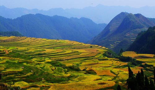 高要梯田群位于丹寨縣高要村西南面321國道旁,面積千余畝,地勢由高到低呈明顯梯帶形狀,該梯田景色隨季節變化而變化,不同季節有著不同的感覺色彩。將要實施的“高要多彩梯田”農業旅游項目借助高要梯田得天獨厚的優勢,按不同的季節種植多種色彩的農作物,用大地藝術形式創造出全國獨樹一幟的“高要多彩梯田”。